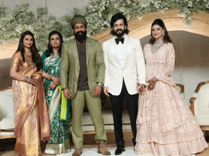 KGF star Yash also posed on the stage with Newlywed Couple.