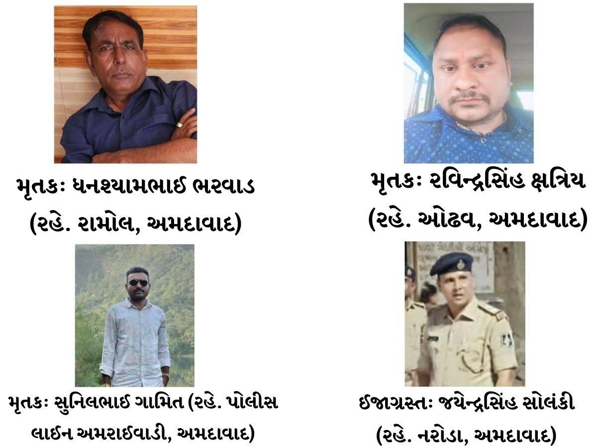 Both policemen serve at the Ramol police station. ACP Karnal Desai from Ahmedabad was immediately sent to Haryana. In this incident, PSI J. P. Solanki was injured while Constable Sunil Gamit, Homeguard Jawan Ravindra and private driver Kanubhai Bharwad have been killed.